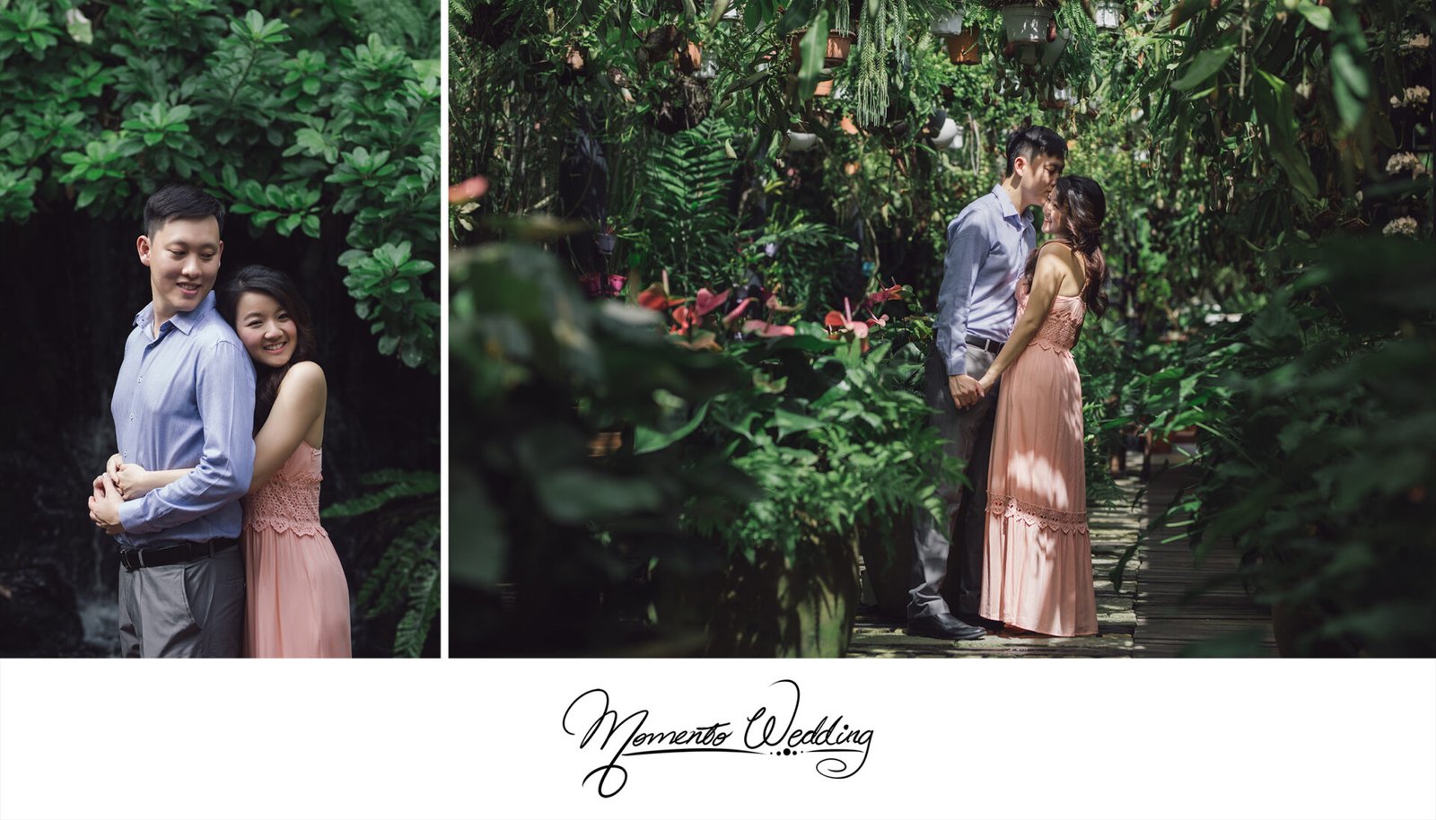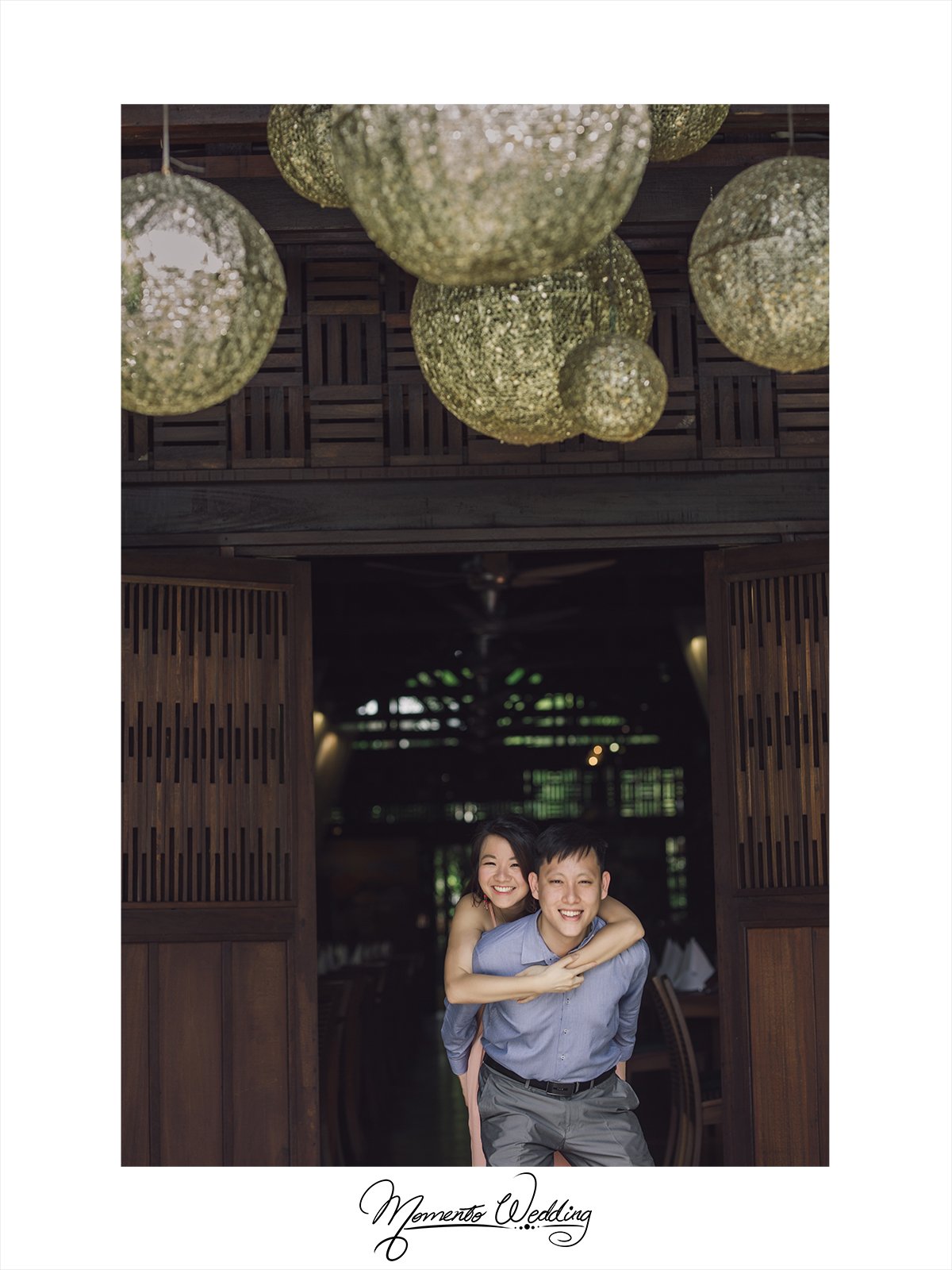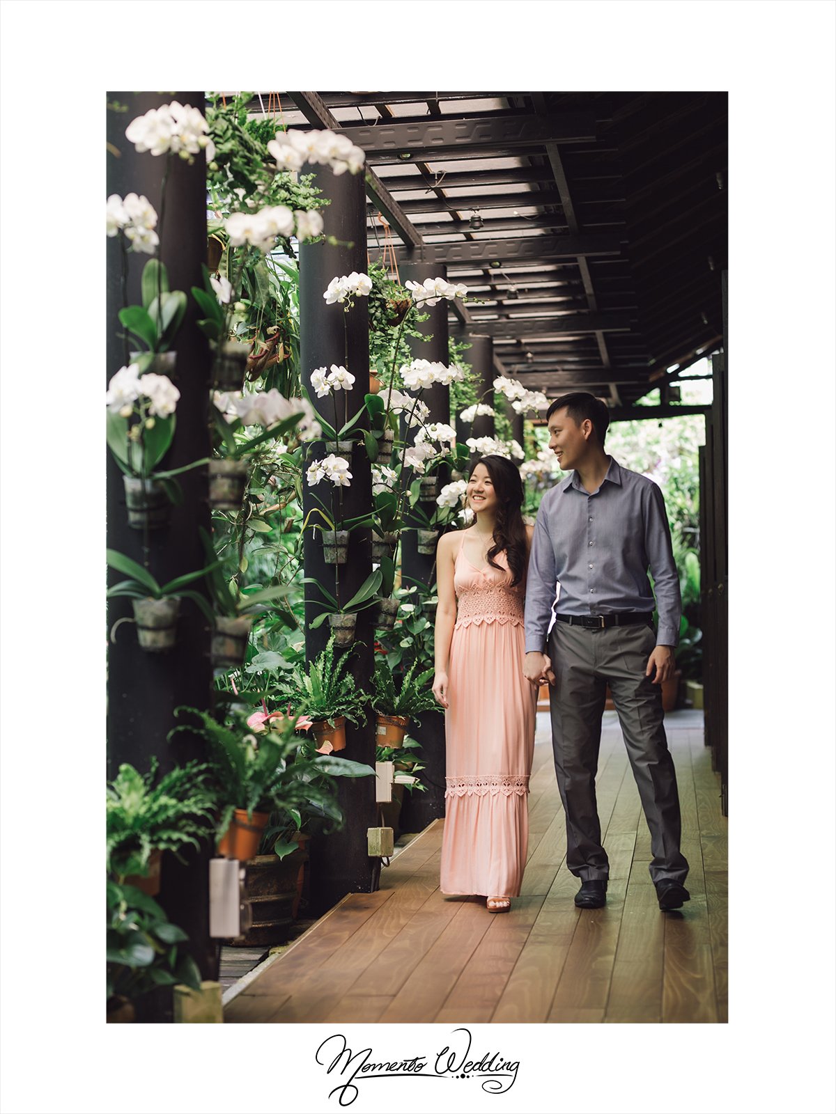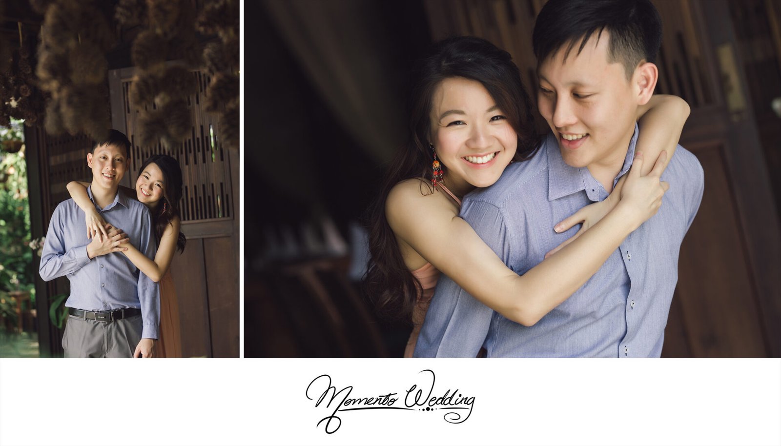 In relation to the style of shoot, they pick Ferringhi Garden as their shooting location. Ferring Garden offers a natural, simplistic décor and ambience, creating a series of candid shots. The lush greeneries and beautiful fresh flower blooms at the venue adds a minimalist touch to their montage. A Casual Pre Wedding requires more candid and natural gestures as opposed to posing shots in a shoot with gowns.