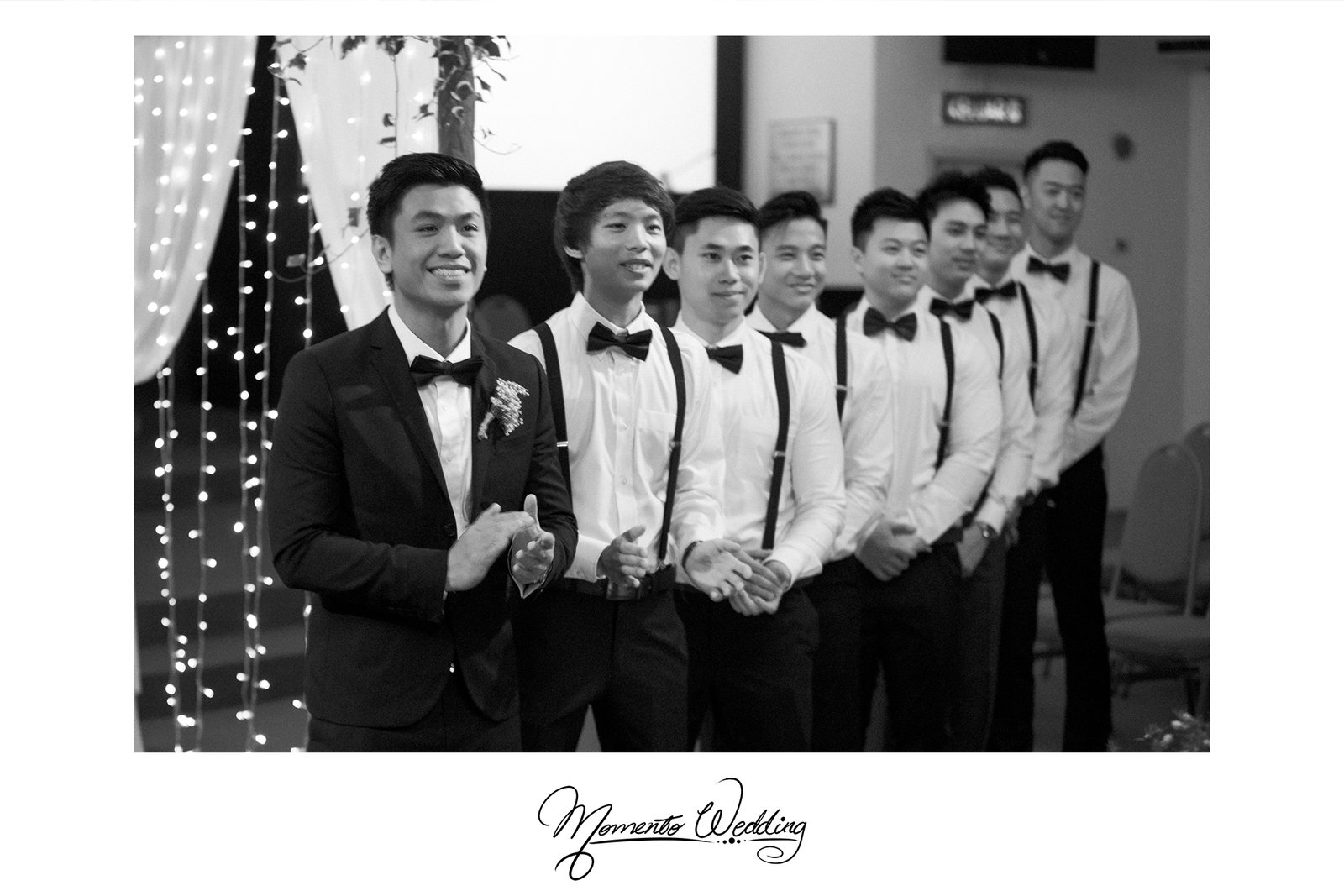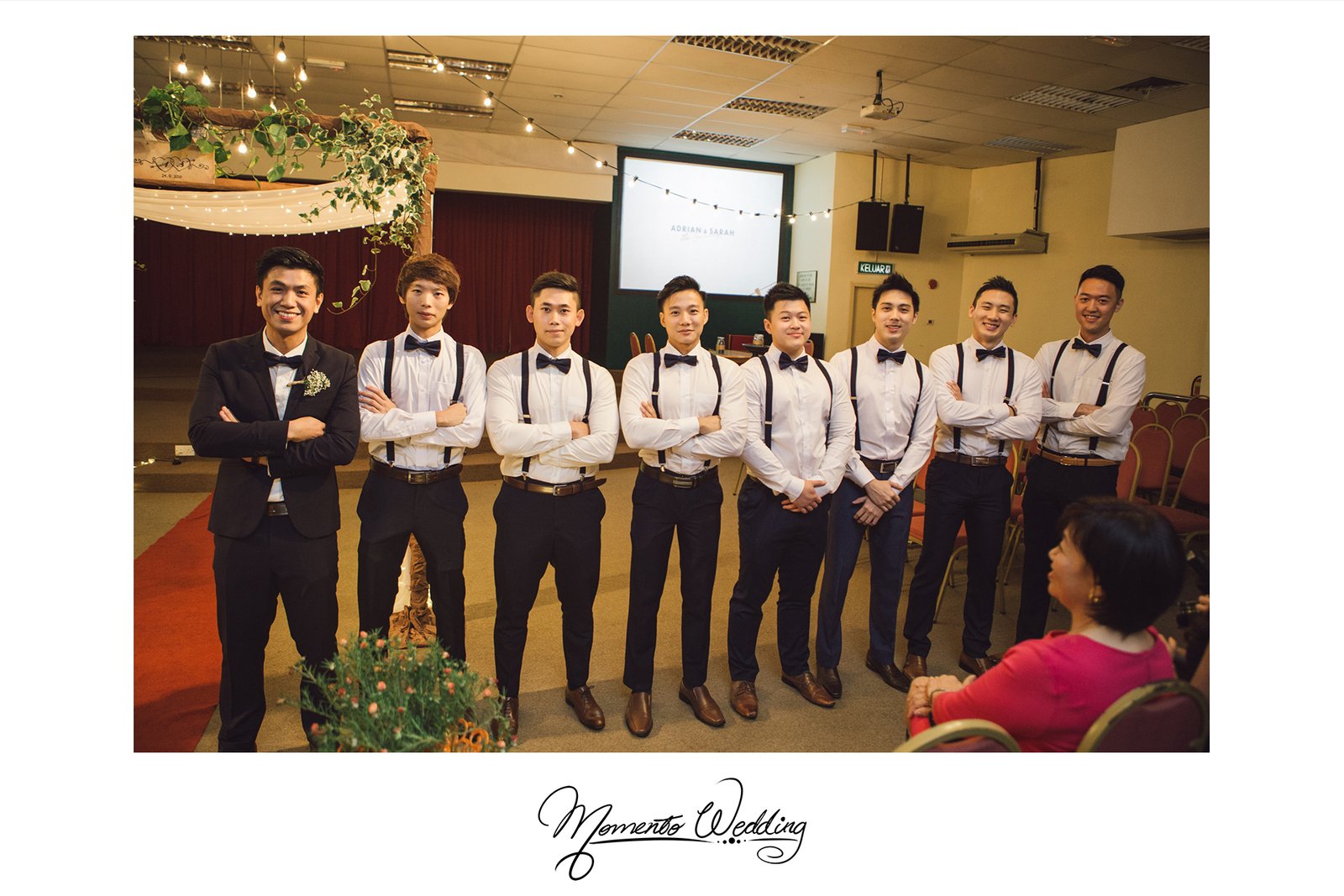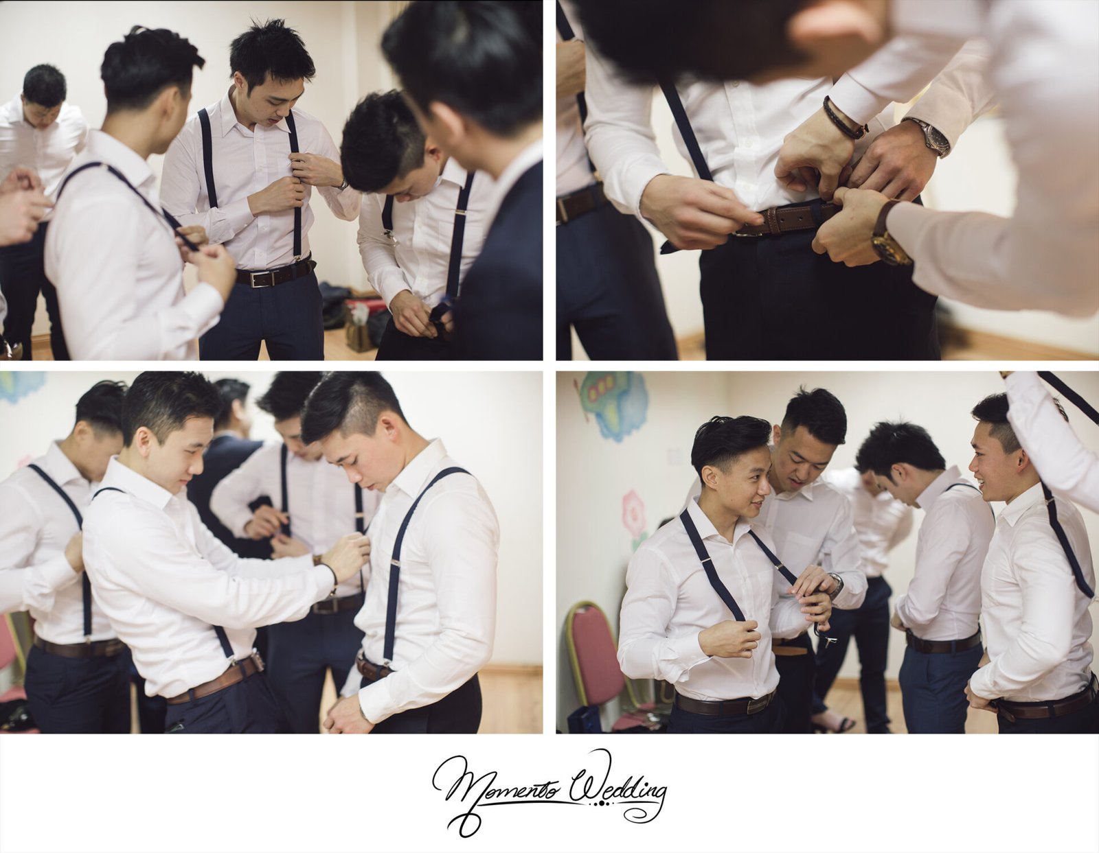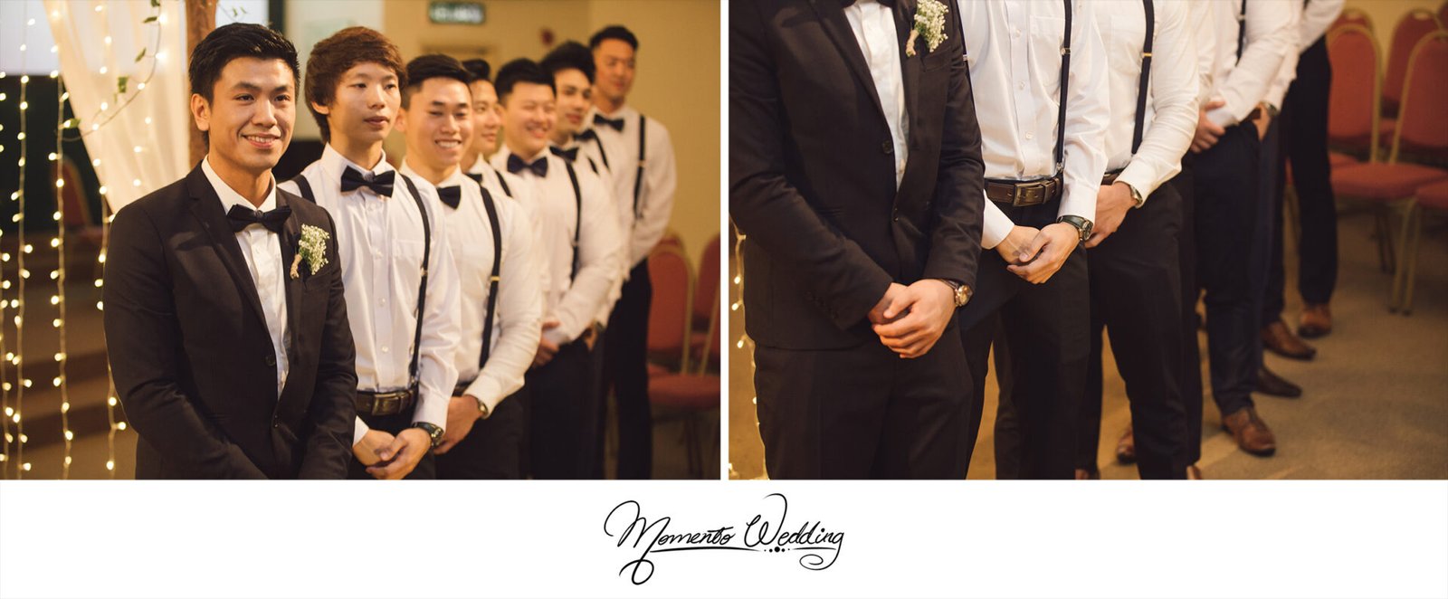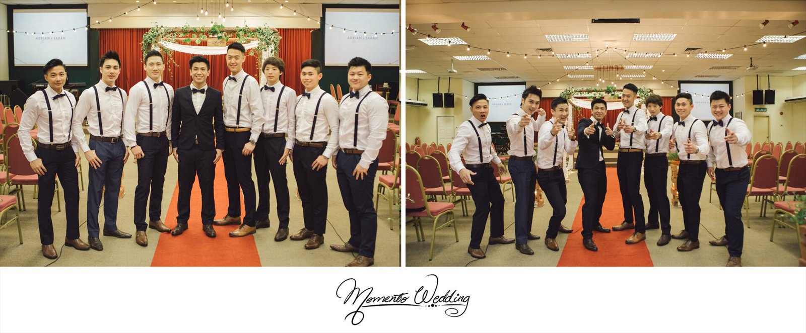 Not only that, these guys don’t have any qualms in walking down the aisle in mini bouquets of Baby Breath! This is really what true friendship is all about! Of course, we cannot leave out Adrian’s almighty Groomsmen as well. All looking dashing in their suspenders, they too have had some fun dabbling with the cute flowery things.