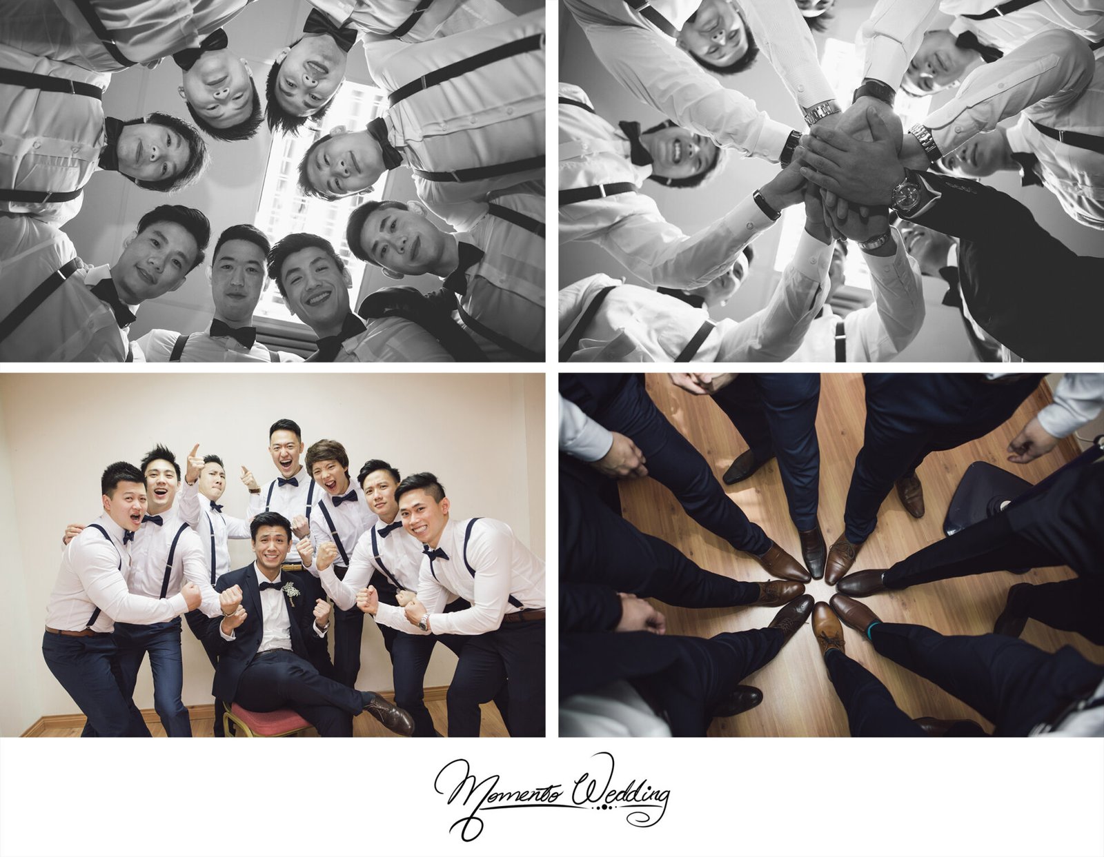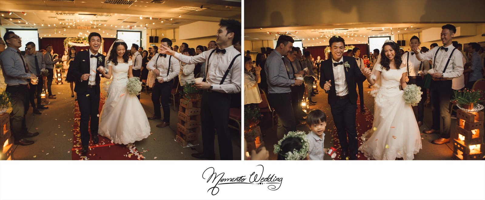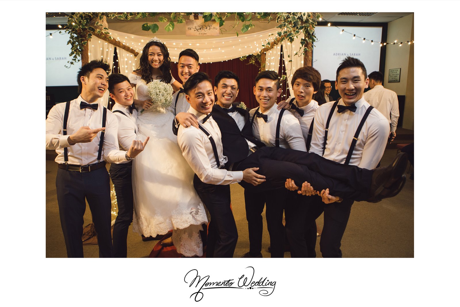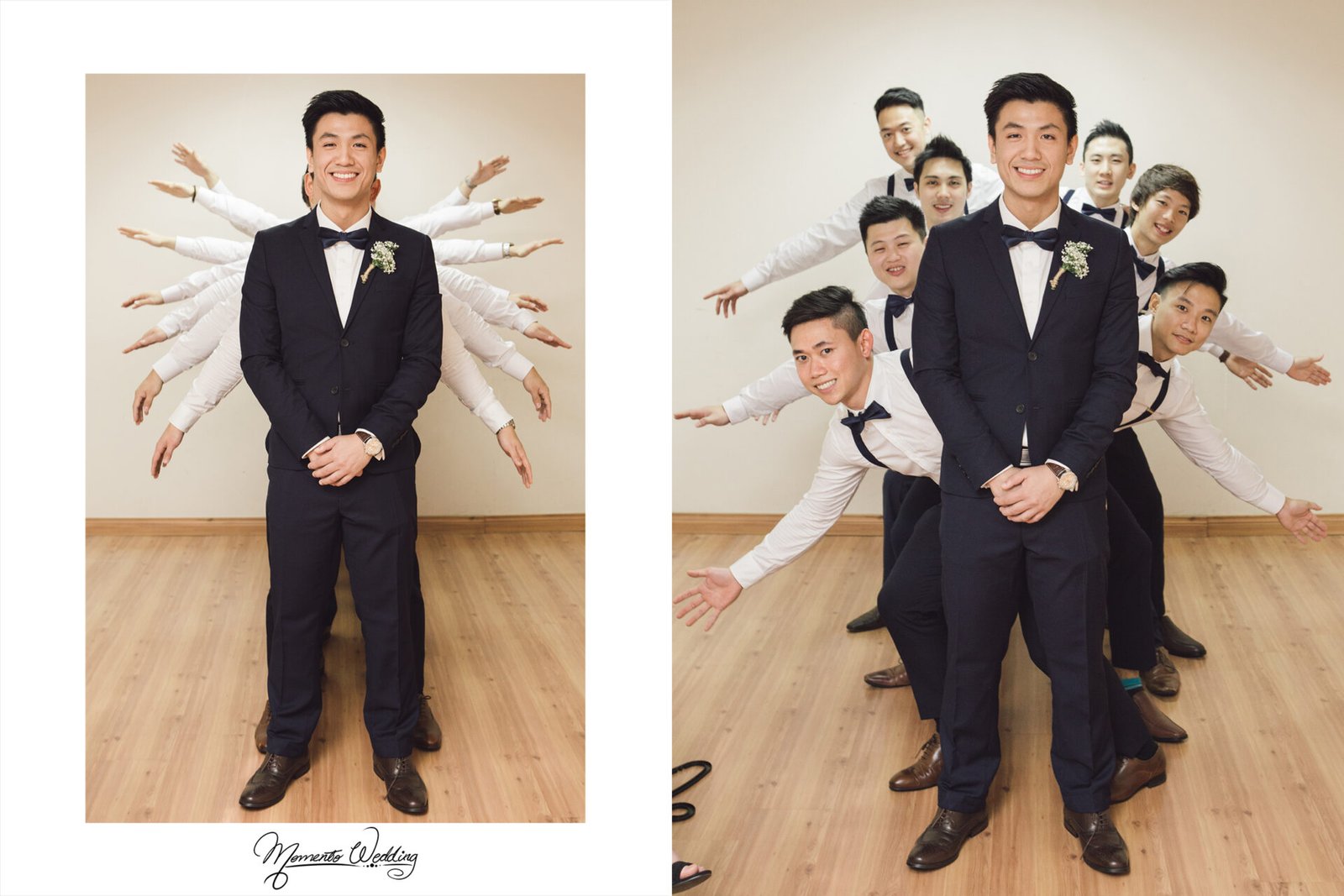 Not only that, these guys don’t have any qualms in walking down the aisle in mini bouquets of Baby Breath! This is really what true friendship is all about! Of course, we cannot leave out Adrian’s almighty Groomsmen as well. All looking dashing in their suspenders, they too have had some fun dabbling with the cute flowery things.