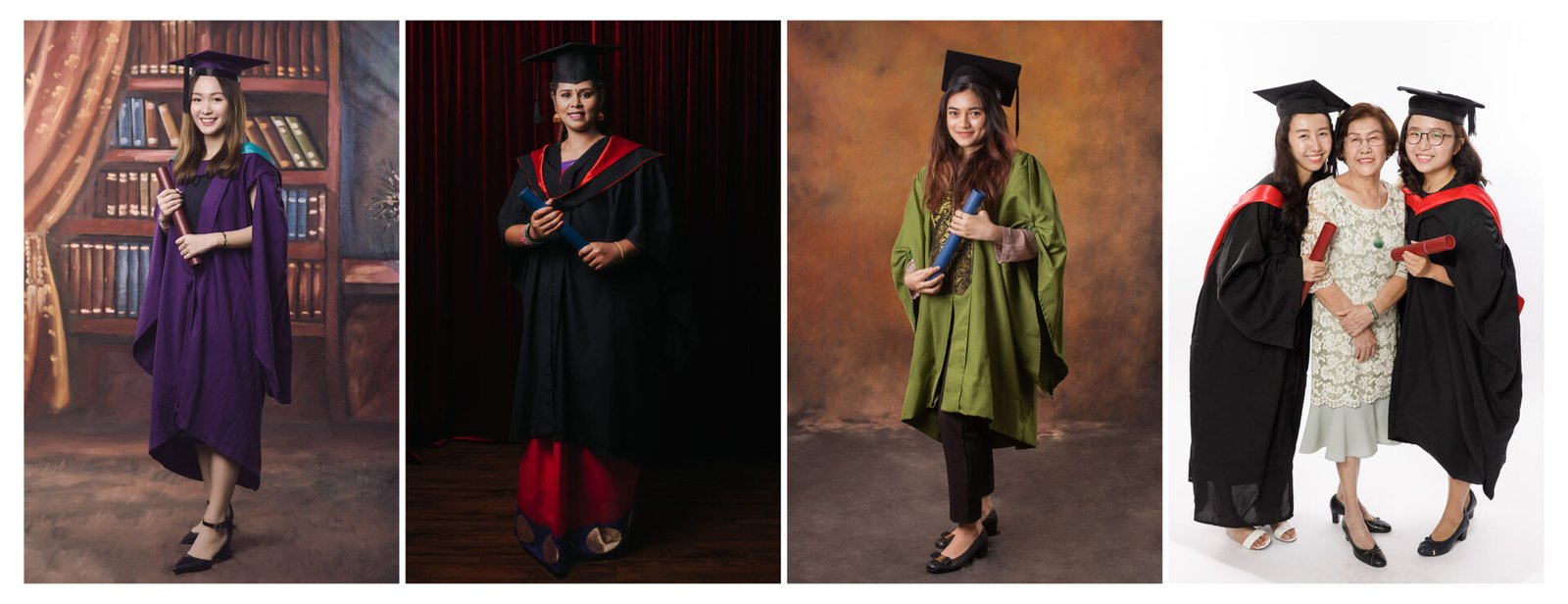 We have some graduates who are from overseas and are unable to have their graduation photos in time after their convocation. Some colleges and universities do not rent the graduation gown after the convocation period. Worry not, we have a full set of gown that includes the mortarboard and hood too which are available for rent. We can also prepare the scrolls for you if needed.