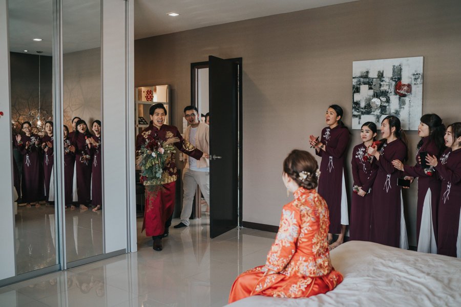 There are so much laughter and smiles and we are glad to capture all these moments on our cameras. As part of the Fetching of Bride tradition, Gary and Nelly opt for traditional outfits of Qun Kwa and suit. In fact, the whole bridal entourage don matching oriental attires too that look classy and elegant!