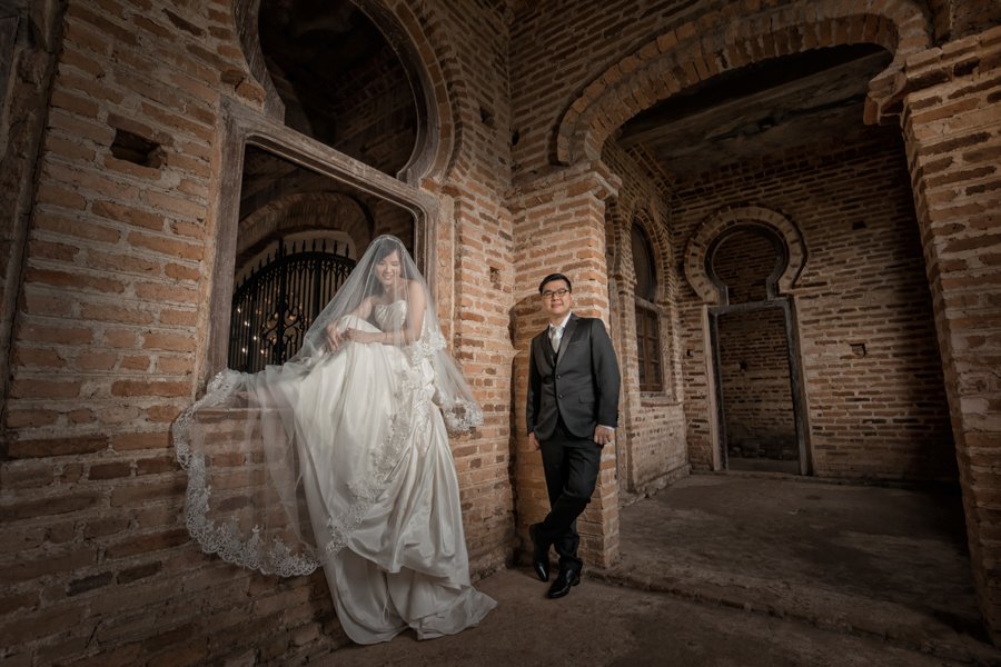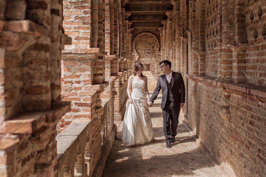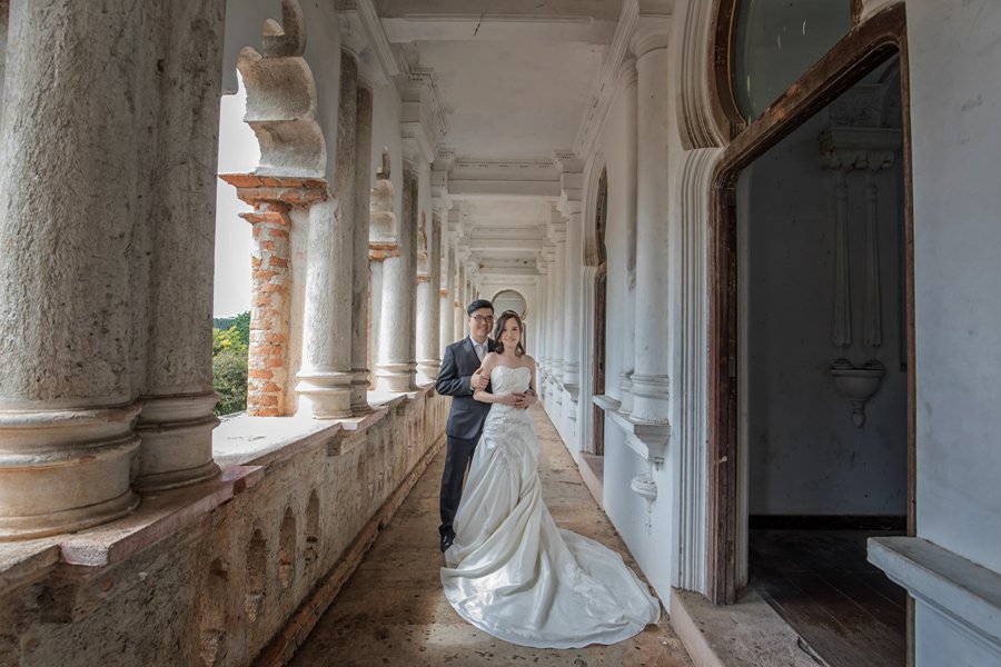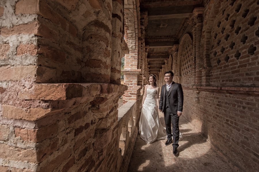 The first location we head to is Kellie’s Castle, an unfinished and abandoned building. This mansion surfaces during the British Colonial area in Ipoh. Its name originates from its builder, a Scottish planter named William Kellie Smith. The ruggedness of the red brick walls provide a mesmerizing location for a pre-wedding shoot.
