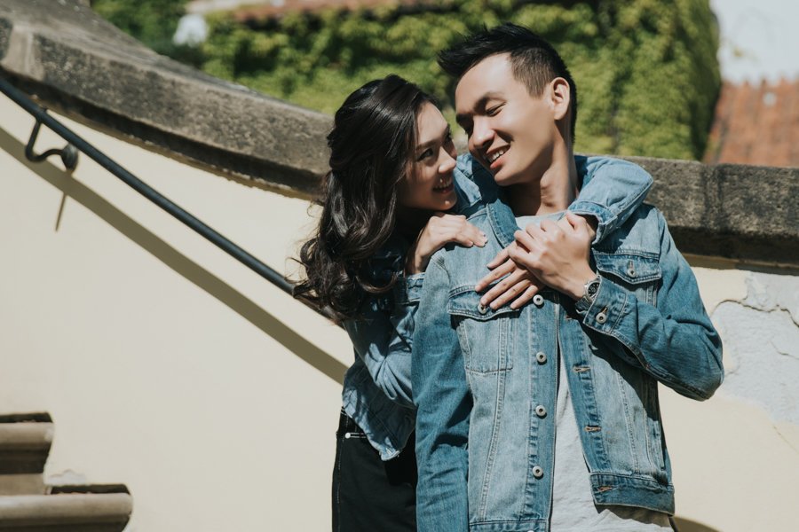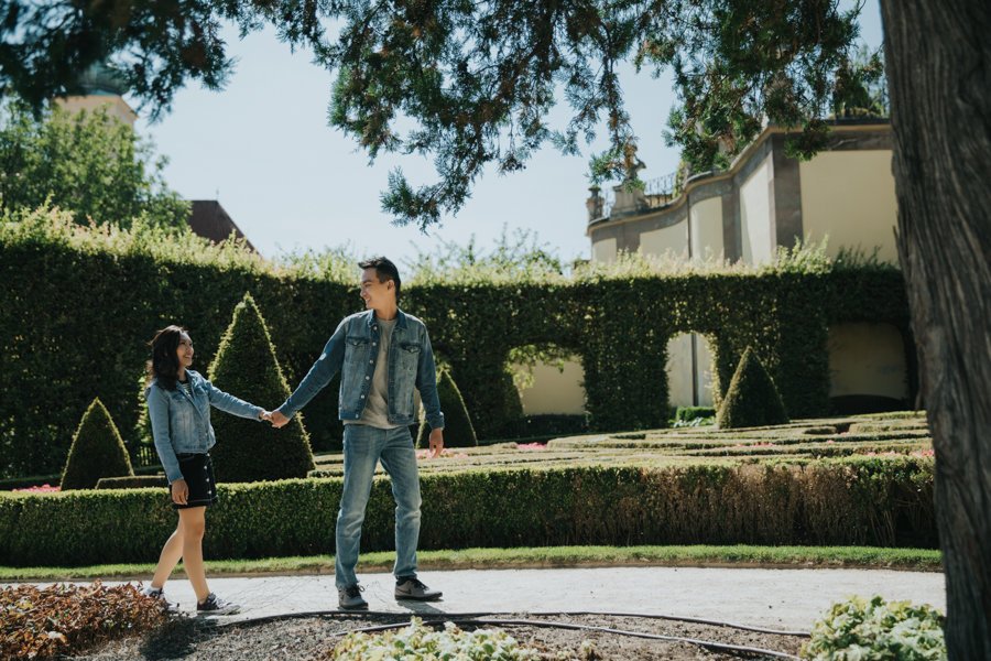 On this bridge, you can see monuments of different symmetries in the background. The Swan River which is located nearby the Charles Bridge is also a charming spot. Do spot these adorable peck of swans in the pictures! Lastly, Sam and Wendy opt for a casual and candid touch at the Prague Botanical Garden.